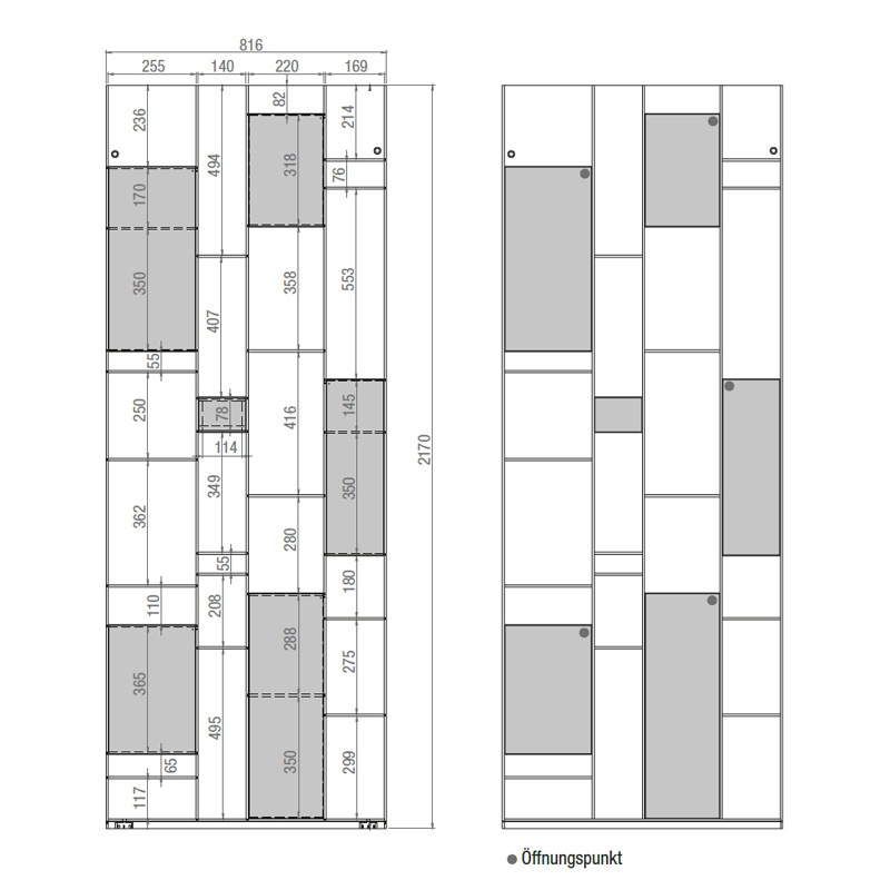 Breite 82 cm | Höhe 217 cm | Tiefe 35 cm